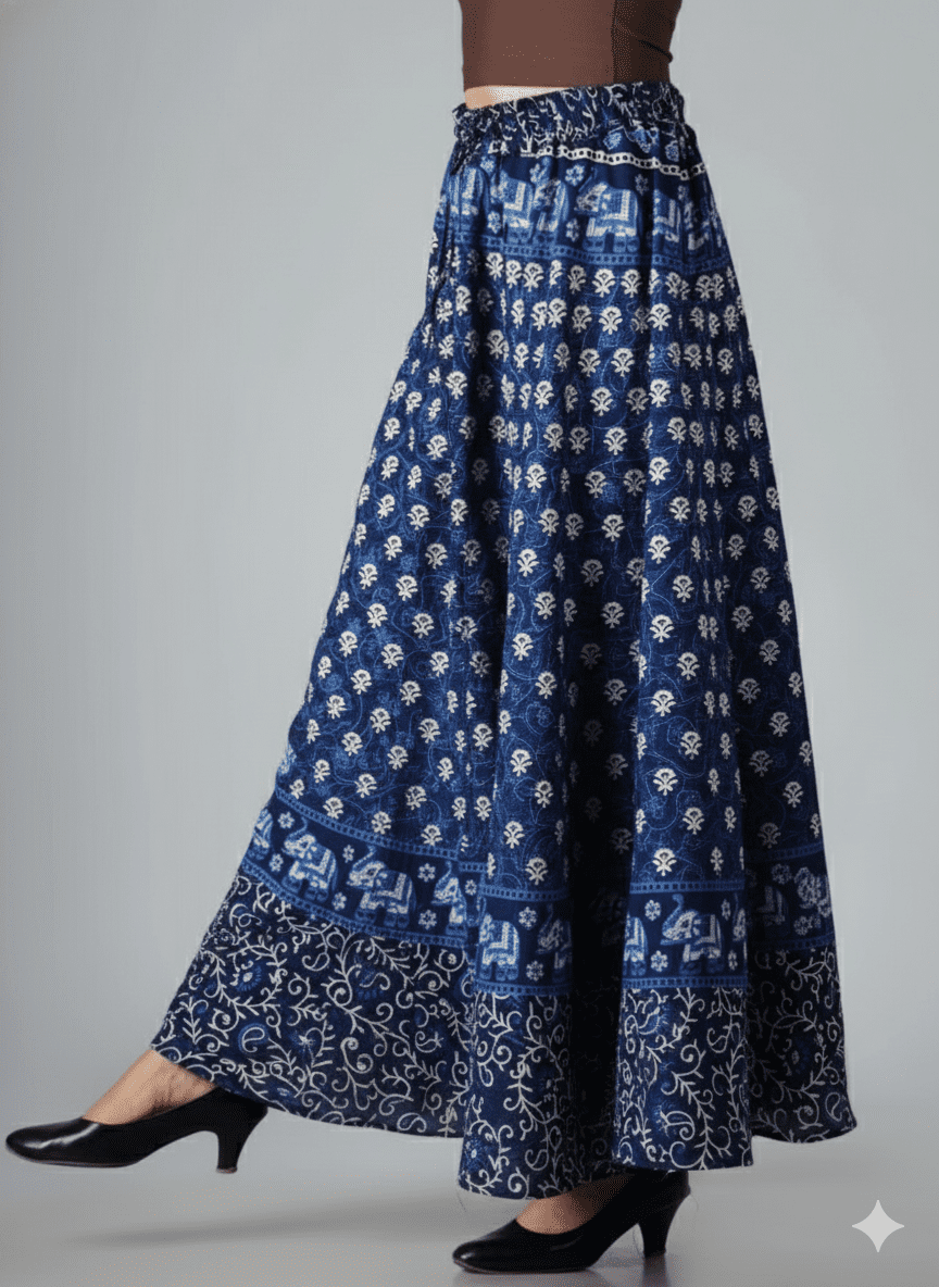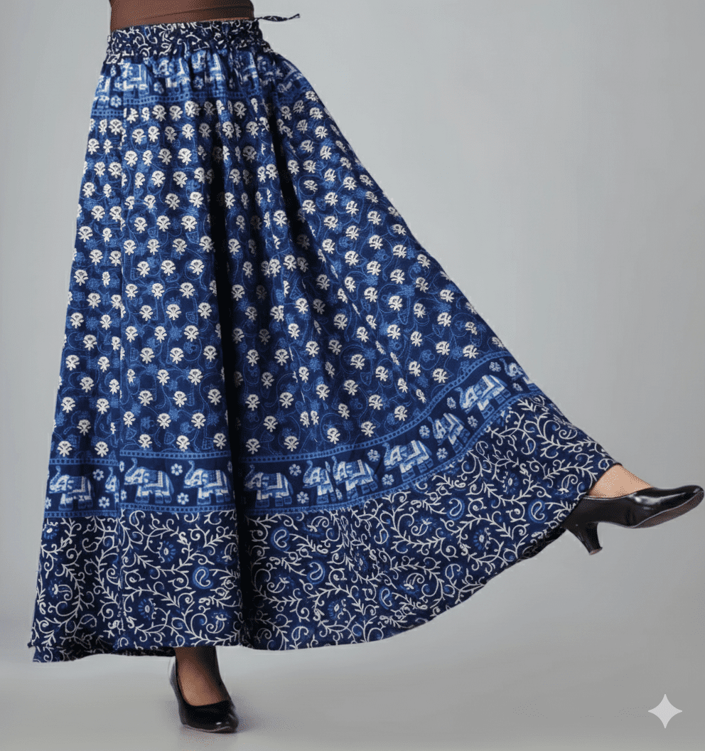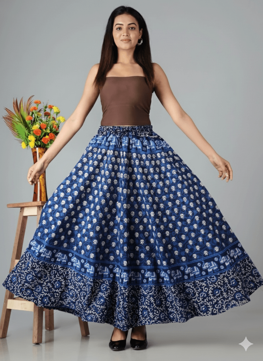 With a 40-inch length, this skirt drapes gracefully, creating a flattering silhouette that complements tops, crop tees, or ethnic kurtis. Whether you’re heading out for a coffee date, a casual event, or a weekend getaway, this Western cotton skirt for women adds elegance and ease to your wardrobe.